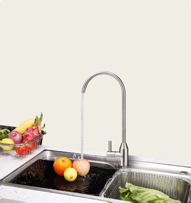 【3】根据NSF认证标准测试结果,QC350产品产水量为15000gal(56.7t),按照5-7口家庭日常饮用水核算。实际寿命根据当地水质和日常使用习惯不同有所差异。