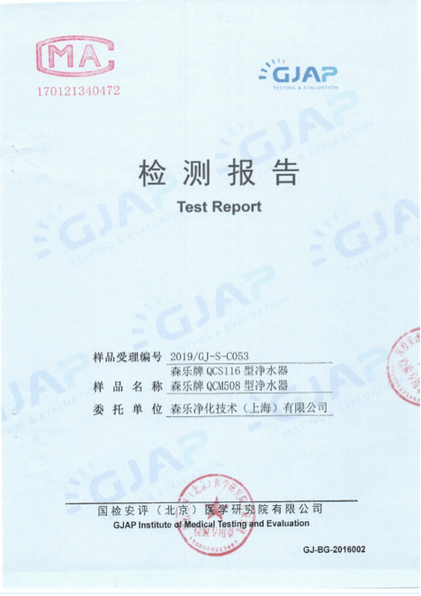 【1】 NSF认证(NSF International)是于1944年成立的一个独立的,不以营利为目的的非政府组织。美国森乐是NSF认证的专业企业。QCS系列全系型号均通过美国NSF42&53认证。